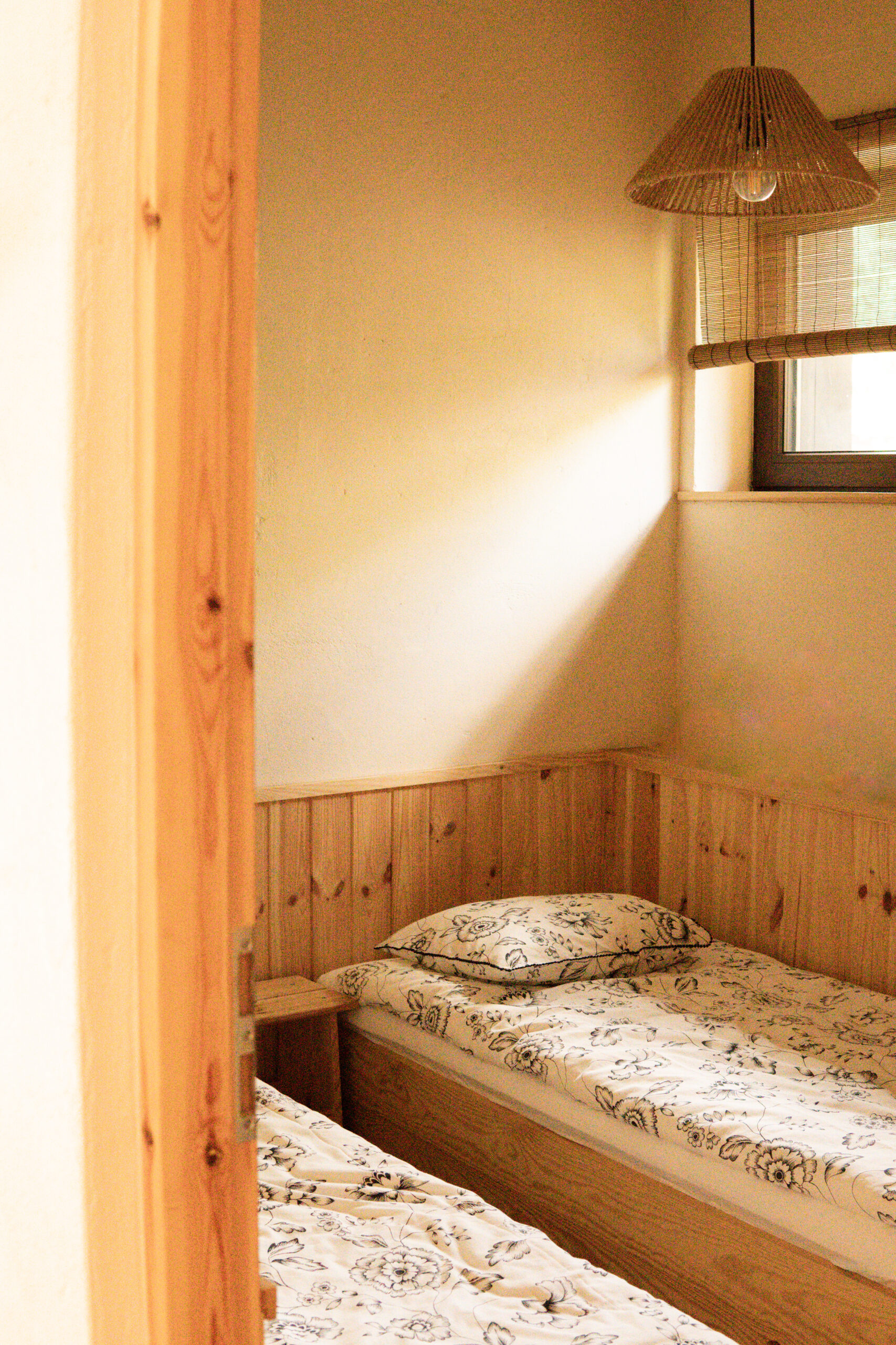 Ziemianka to wygodnych rozmiarów domek dla 4 osób z przestrzennym salonem z aneksem kuchennym i łazienką z prysznicem. Jest idealną przestrzenią dla dwóch par lub rodziny.